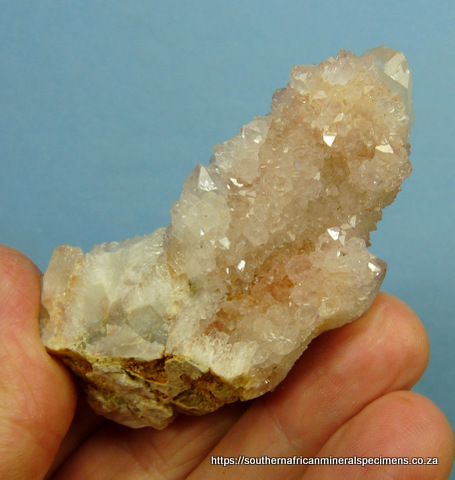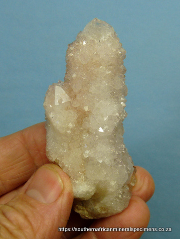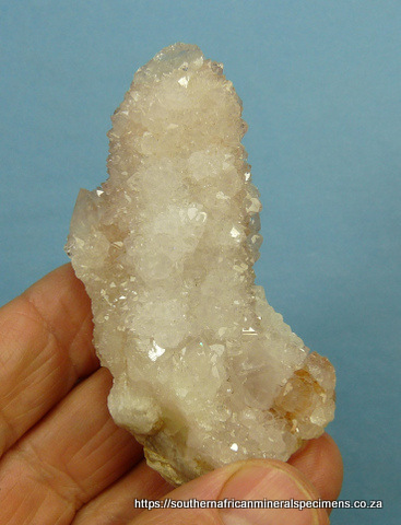 77 x 35 x 28 mm Description: A group of milky quartz crystals with a hint of amethyst colouring. The back of the