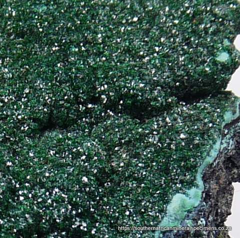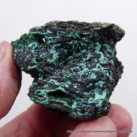 x 50 x 42 mm Description: Malachite on a conglomorate matrix, including shattuckite. The specimen also has a few small cavities, lined with malachite crystals. The only notable damage is to the edges of the specimen. Weight