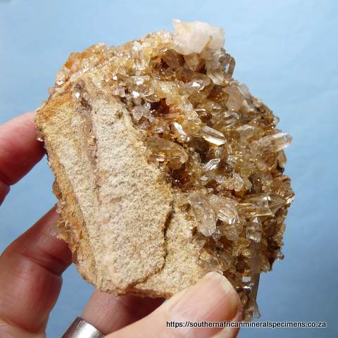 100 x 80 x 45 mm Description: Quartz crystals sit on a sandstone matrix. The bottom of the specimen (image 2nd from top, left). The specimen has a few nicks. Weight