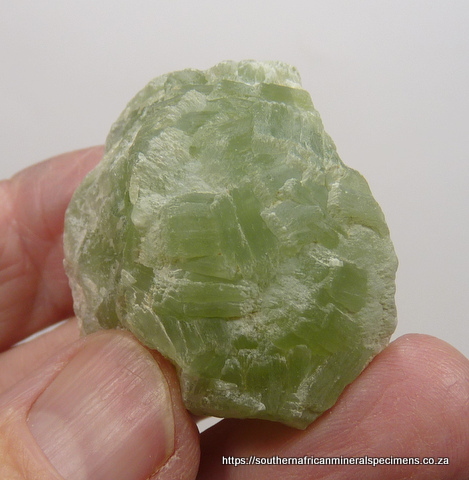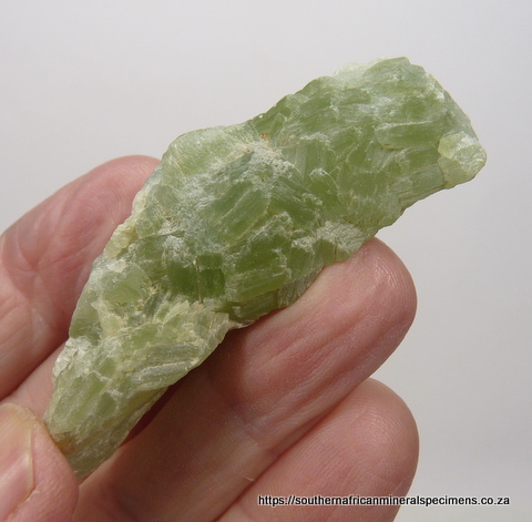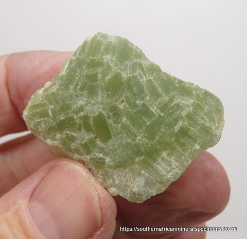 Description: Ten pieces of prehnite from a relatively new find, ranging in length from 35 - 65 mm. Some of the pieces have bits of (possibly) limestone attached. These pieces are all-natural, but if you want to improve their appearrance, you can oil them with 'Cook and Spray' or liquid paraffin. If they become dull after some time, you can brighten them up again with a dash of oil. If you do oil them, just make sure that you put them on a surface where the oil will not cause a problem. Below are random examples of those included in the lot. Total Weight