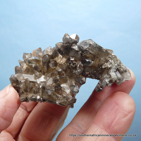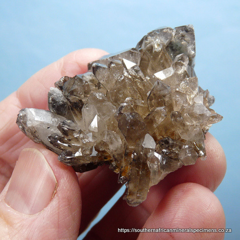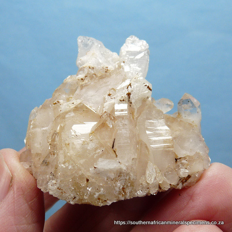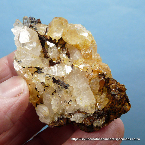 Description: Ten quartz crystal specimens measuring 43 - 65 mm in length. The five darker specimens are from the Northern Cape, and the five clear / whitish ones are from the Western Cape, mined by ourselves. Features