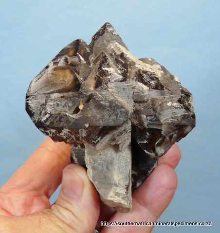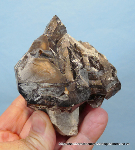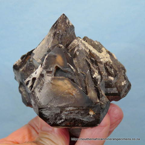 93 x 90 x 75 mm Description: A repaired quartz sceptre. The top of the main termination broke off and was fixed with cyanoacralate glue leaving only a thin crack line. This unusual sceptre has a complicated growth pattern with bits of hyalite opal on a few surfaces. The specimen has a few nicks. Weight