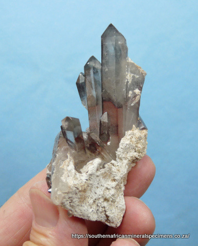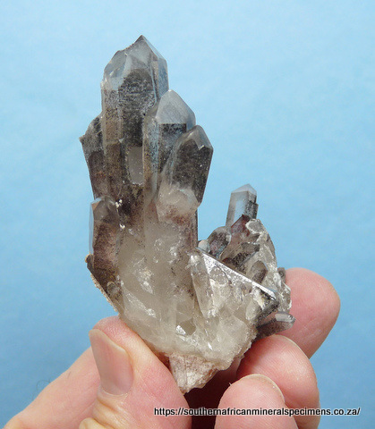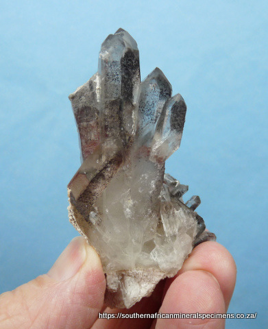 Measurements: 75 x 50 x 35 mm Description: A group of quartz crystals with hematite inclusions and bits of feldspar on it. The