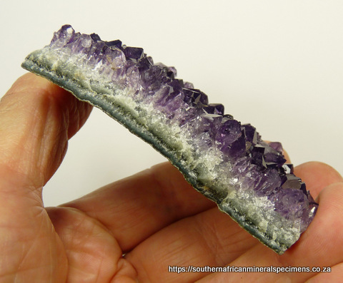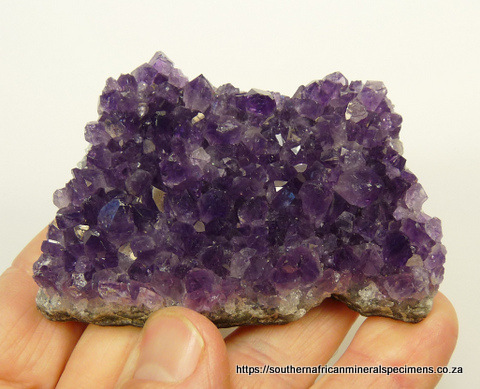 Measurements: 78 x 55 x 17 mm Description: A drusy plate of amethyst quartz crystals. The specimen has a few small nicks. When displaying your amethyst specimens, keep in mind that the colour tends to fade when exposed to sunlight. Weight