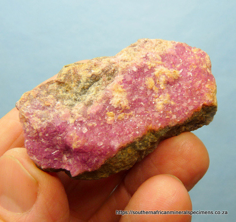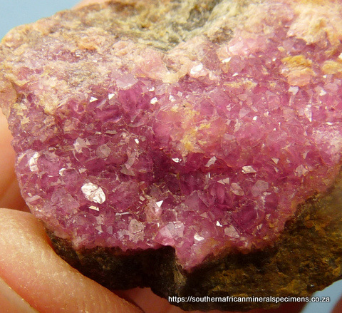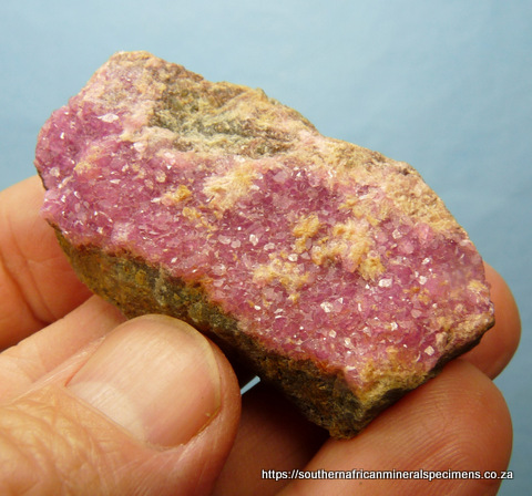 Measurements: 55 x 33 x 13 mm Description: A thin layer of cobaltoan dolomite crystals on rock matrix, which has been trimmed. The specimen has a few nicks. Weight