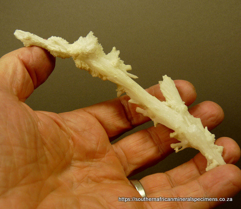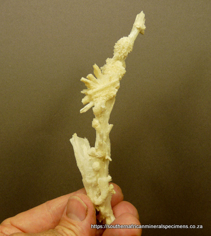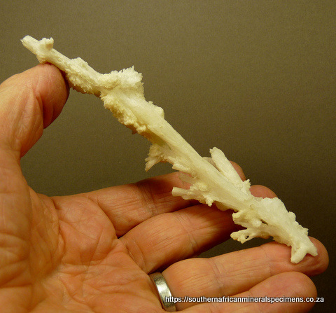 has relatively little damage to it, only a few small nicks. Weight of Specimen: 34 g Chemical Composition: CaCO3 (aragonite, polymorh of calcite) Hardness on Mohs Scale: (aragonite, polymorh of calcite) 3½ - 4 Location: Rand London Quarry, Krugersdorp, Gauteng, South Africa.Specimen