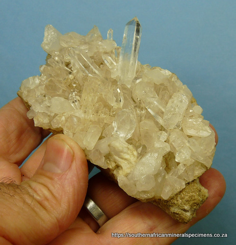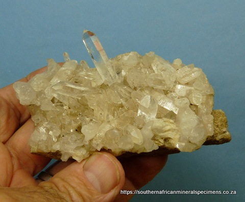 mm Description: Clear quartz crystals sit on a quartz matrix. The specimen displays well on a flat surface, all-round. A few crystals are damaged. Weight
