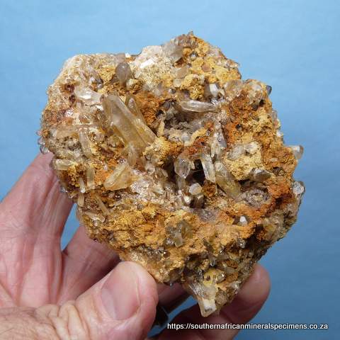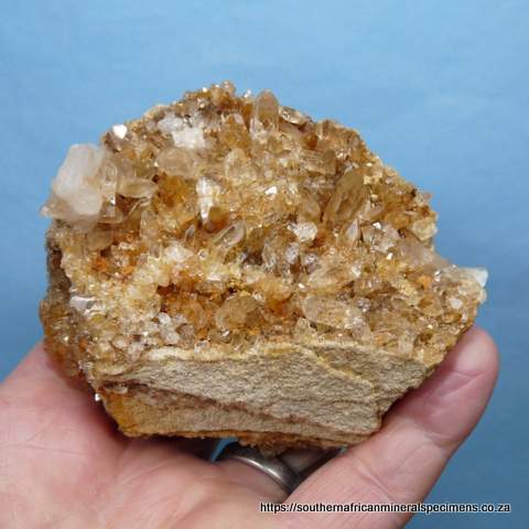 100 x 80 x 45 mm Description: Quartz crystals sit on a sandstone matrix. The bottom of the specimen (image 2nd from top, left). The specimen has a few nicks. Weight